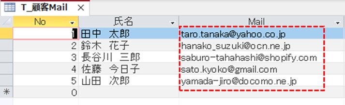 テーブル「T_顧客Mail」にはMailフィールドが含まれています。