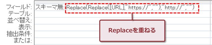 - スキーマ無: Replace(Replace([URL],"https://",""),"http://","")