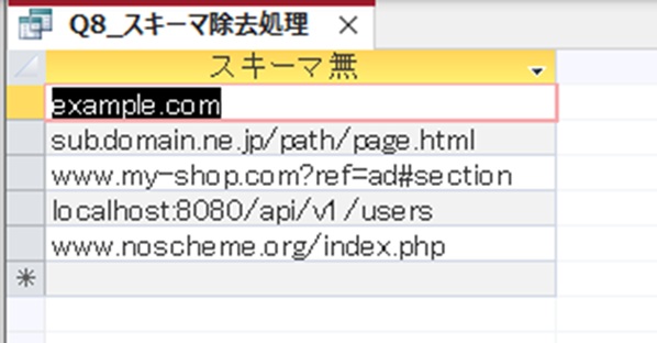 クエリの実行結果、無事にURLスキーマを除去することができました。